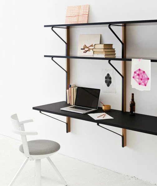 Designed by Ronan & Erwan BouroullecManufactured by ArtekThe Artek REB 010 Kaari Shelf with Desk is the ideal versatile solution for those who want to utilise limited space. Designed to work as a shelving unit and a desk, the simple nature of this design means it will suit a whole host of interior styles.Dimensions: Height: 142cm Width: 200cm Shelf depth: 35cm Desk depth: 55cm