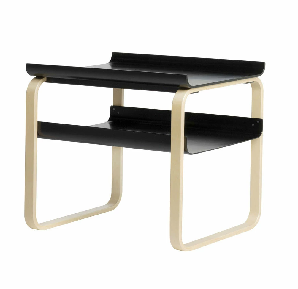 Designed by Alvar AaltoManufactured by ArtekThe frame of Side Table 915 is made of two elegant loops of lamella. Both top and bottom shelf are composed of pressed birch plywood. Their upturned edges contribute to the table’s distinctive look while ensuring all items remain in place. Exceptionally lightweight and durable, Side Table 915 possesses the pleasing, fluid curves that are a signature of designer Alvar Aalto’s work. Designed in 1932, Side Table 915 was originally created for the Paimio Sanatorium, Finland.Material: Frame birch, natural lacquered. Table top and shelf lacquered birch veneer.Dimensions: Length 59 cm, width 49 cm, height 59 cm