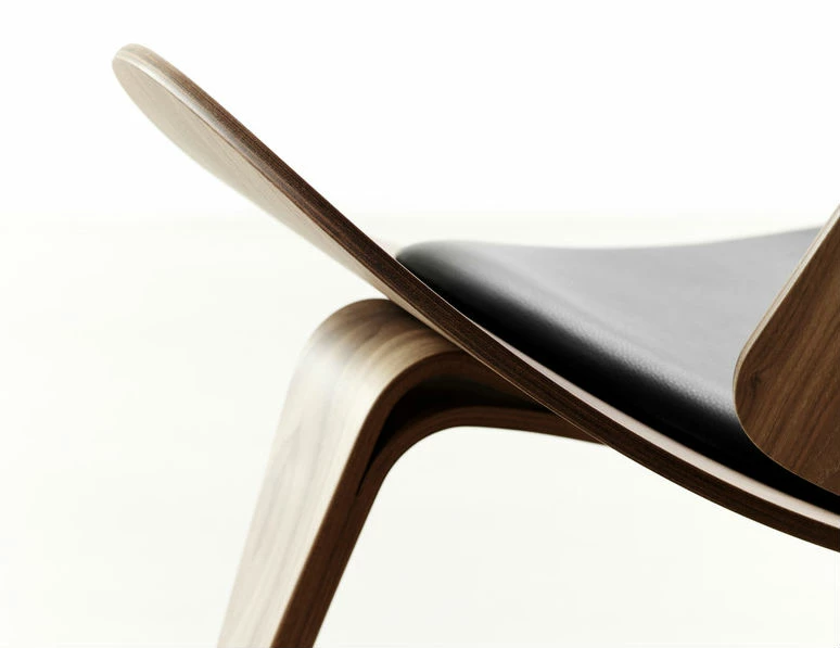 Designed by Hans J. WegnerManufactured by Carl Hansen & SonThe Carl Hansen CH07 Shell chair is a sculptural easy chair with a triangular footprint. The chair is frequently placed where it can be viewed from all sides, on its own or in groups. Sometimes called “The Smiling Chair”, the three-legged construction provides absolute stability; the chair achieves a floating lightness due to its wing-like seat and the arching curves of its tapered legs.Shell may be upholstered in a range of fabrics selected by Carl Hanson. Please see materials section below or enquire for further details.
