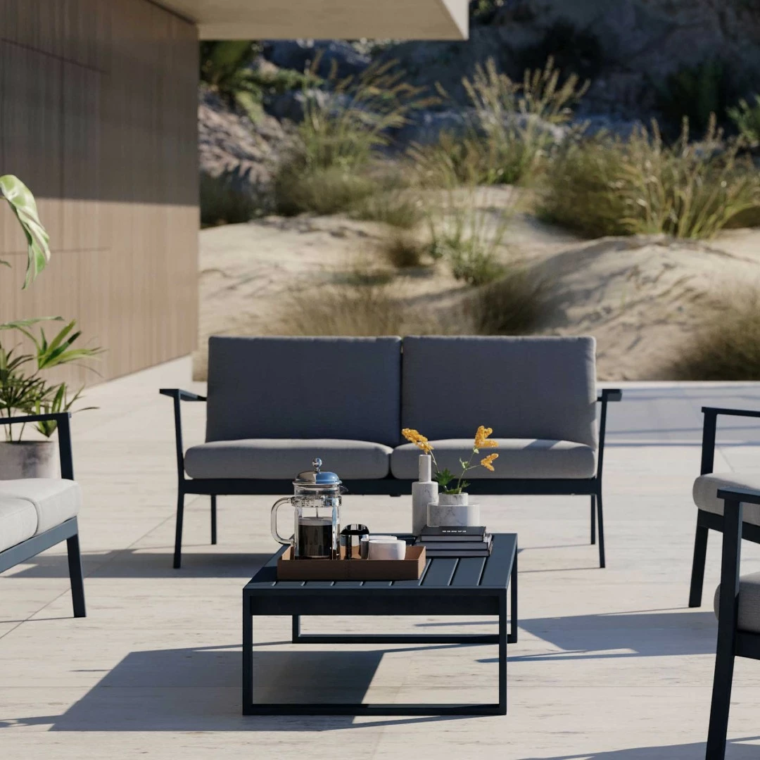 Designed by Mathew HiltonManufactured by CaseThe Eos Coffee Table by Matthew Hilton combines a contemporary aesthetic with a lightweight structure of clean lines. From city roof terraces to country gardens, the Eos range will transform your outdoor space into an extension of your home.The Eos Coffee Table is smartly proportioned with ample space for relaxed alfresco dining.Crafted from weather resistant powder-coated aluminium, the Eos garden furniture collection is robust and impervious to rust with a lightweight, durable and low-maintenance finish.
