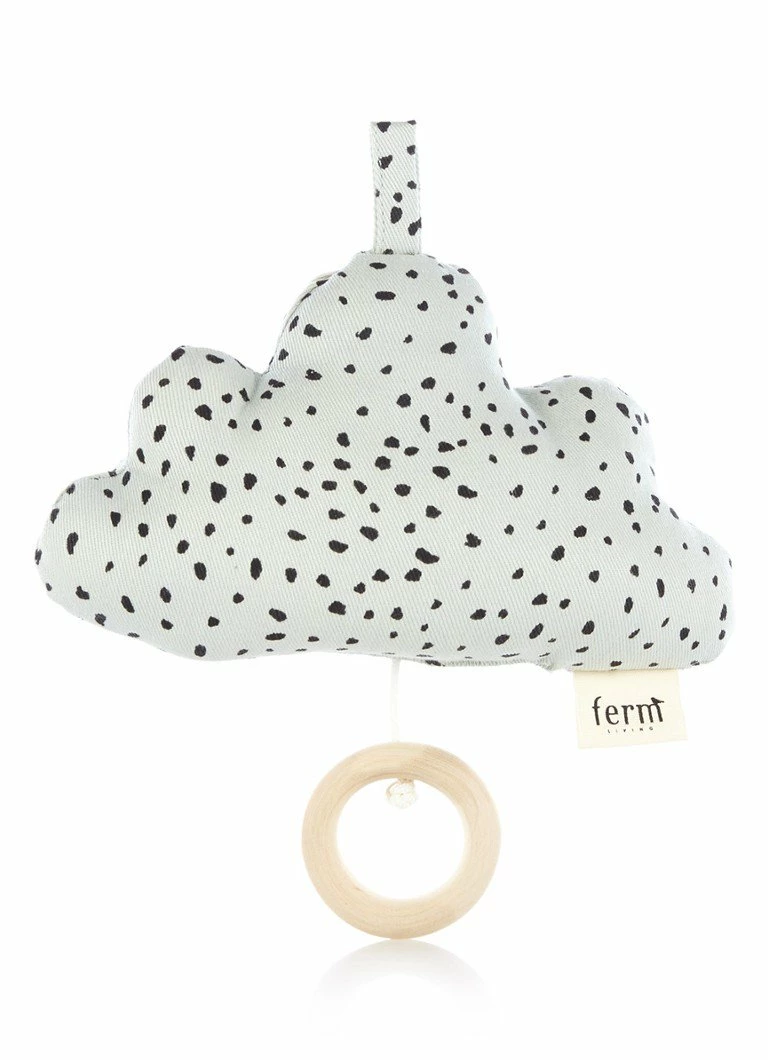 Designed by Ferm LivingManufactured by Ferm LivingOnly the best will do for the little ones. And why not let our fluffy music mobiles lull them to sleep. This cloud shaped music mobile is made of 100% organic cotton, mint dots and gently plays Brahms ’Lullaby’.For cleaning wipe with a damp cloth.All ferm LIVING music mobiles are CE tested.
