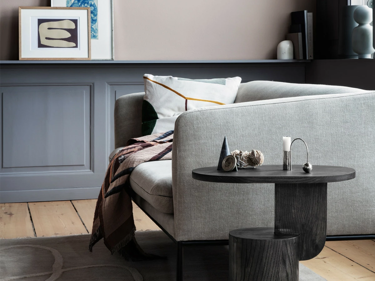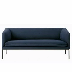 Designed by Ferm LivingManufactured by Ferm LivingStrict, sculptural forms combine with expert craftsmanship to create a refined and effortless sofa in the Turn two seater sofa from Danish design icons, Ferm Living.In collaboration with Says Who, Ferm Living has created a multifunctional and modern two seater sofa, ideal for a variety of spaces and atmospheres. Elegant and slim metal legs, defying their diminutive size, support a timeless and clean upholstered upper seat, with soft inner curves and warming materials. The upholstery, a cotton/polyester mix, is durable yet luxurious, with three available colourways. The overall volume of the sofa is discreet, which offers practicality and allows the user to easily mix it with their existing furniture.Turn may be upholstered in a range of fabrics selected by Ferm Living. Please see materials section below or enquire for further details.