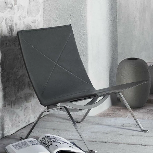 Designed by Poul KjærholmManufactured by Fritz HansenThe discrete and elegant lounge chair PK22™ epitomizes the work of Poul Kjærholm and his search for the ideal type-form and industrial dimension, which was always present in his work. The profile of the steel frame structure originates from his graduation project, the “Element” Chair (PK25™), from the School of Applied Arts in Copenhagen.