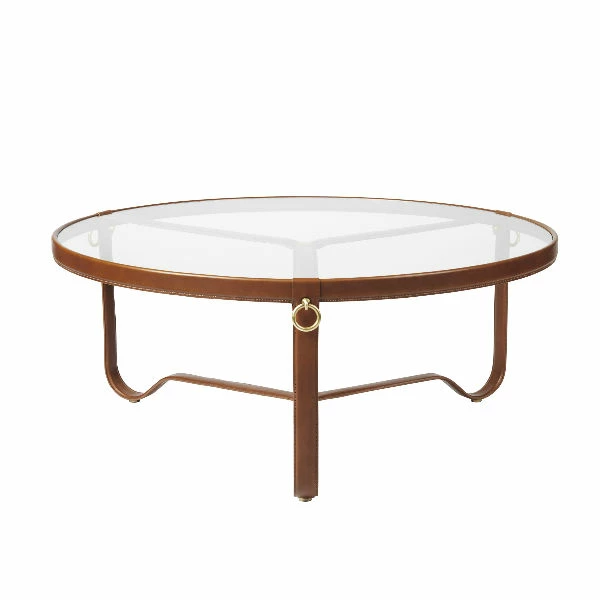 Designed by Jacques AdnetManufactured by GubiThe Adnet Coffee Table was originally designed by French Modernist Jacques Adnet (1901 – 1981) in the 1950’s. Adnet was always ahead of contemporary trends and became famous for his avant-garde designs and unusual combination of leather, metal and glass. The iconic Adnet Coffee Table exemplifies everything the French architect and interior designer stands for and perfectly merges his Art Deco style with his strong commitment to functionalist principles.Placed on three soft curved metal legs, elegantly meeting in the heart of the table, the round glass top is edged with a hand-made leather rim and adorned with three gilded brass rings. The timeless design of the Adnet Coffee Table embodies modern materials and superb craftsmanship and adds a distinctive value to any home or professional space.
