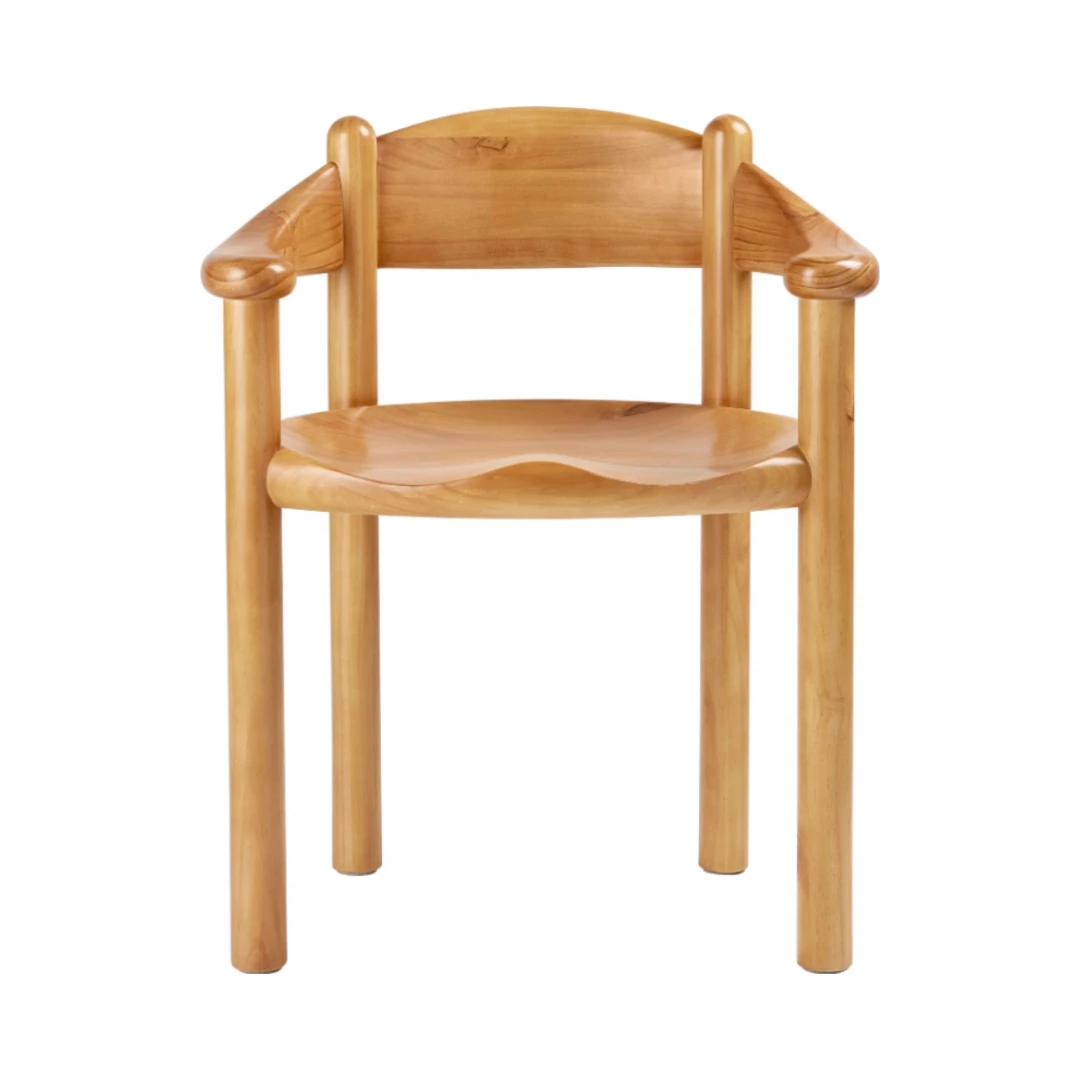 Designed by Rainer DaumillerManufactured by GubiSolid in construction, simple in form, and sculptural in expression, the Daumiller Armchair’s straightforward materiality and robust composition pay tribute to Rainer Daumiller’s lifelong affinity with natural materials and forms. Constructed in sustainable solid Pine just as the original pieces produced by Hirtshals Sawmill in 1977 were, the seat and backrest are ergonomically adapted to the contours of the body, which only adds to the bold, retro expression of this Danish design classic.