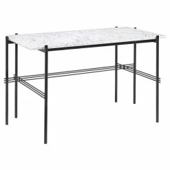 Designed by GamFratesiManufactured by GubiPlaying with the contrast of a solid table top and the characteristic slender metal legs with a careful crossing detailing, the TS Desk is a modern and stylistically pure desk perfectly suited for an office space where the home-like feel is sought for.The TS Collection got its name as well as inspiration from the renowned restaurant The Standard in Copenhagen where the materials and design vision have strong references to the building’s architecture. The visual lightness in combination with honest materials and flawless craftsmanship, the TS Desk has an outstanding minimalistic design that would make a beautiful addition to any modern interior or office space.