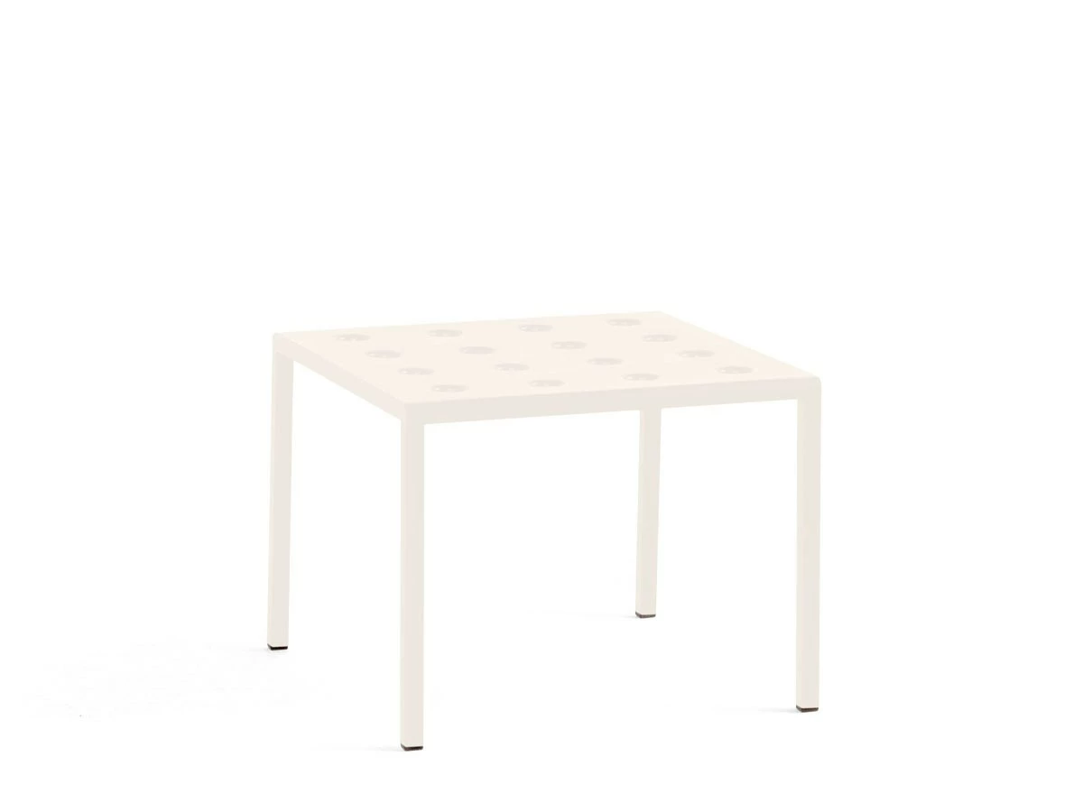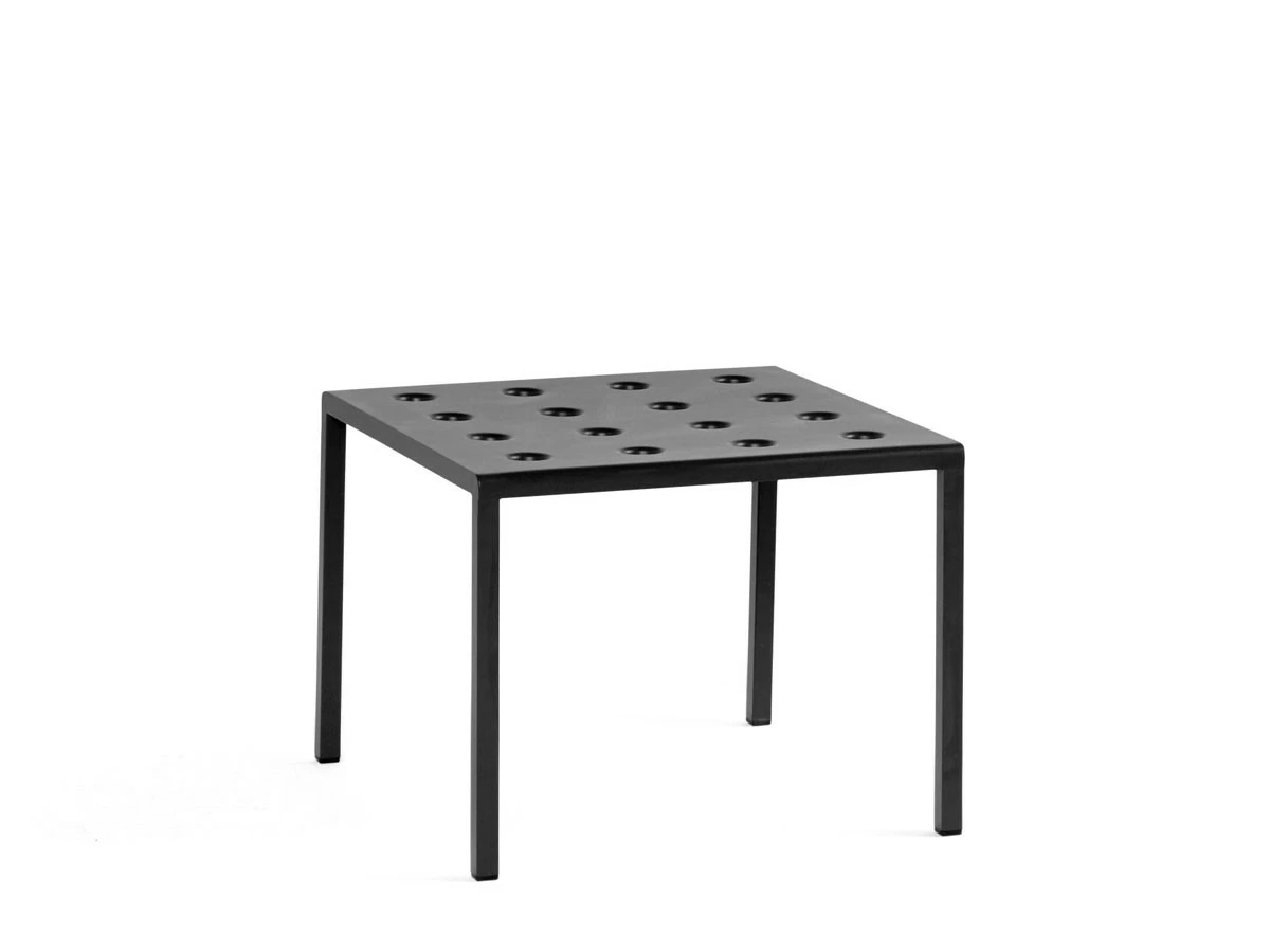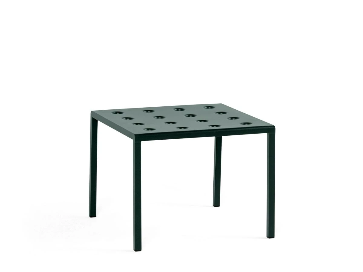 Designed by Ronan and Erwan BouroullecManufactured by HayDesigned for HAY by Ronan and Erwan Bouroullec, the Balcony Low Table is an elegant side table for outdoor use. The simple square design is softened by slender legs, with the multiple holes on the table’s surface strengthening the construction, as well as creating a distinct expression. Made in powder-coated steel with an outdoor primer for optimal resilience and durability, Balcony is available in a number of different colour and size options, making it a versatile table that can be used as an extra seat or storage surface in all kinds of outdoor spaces.