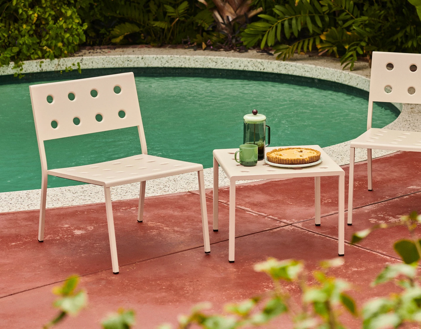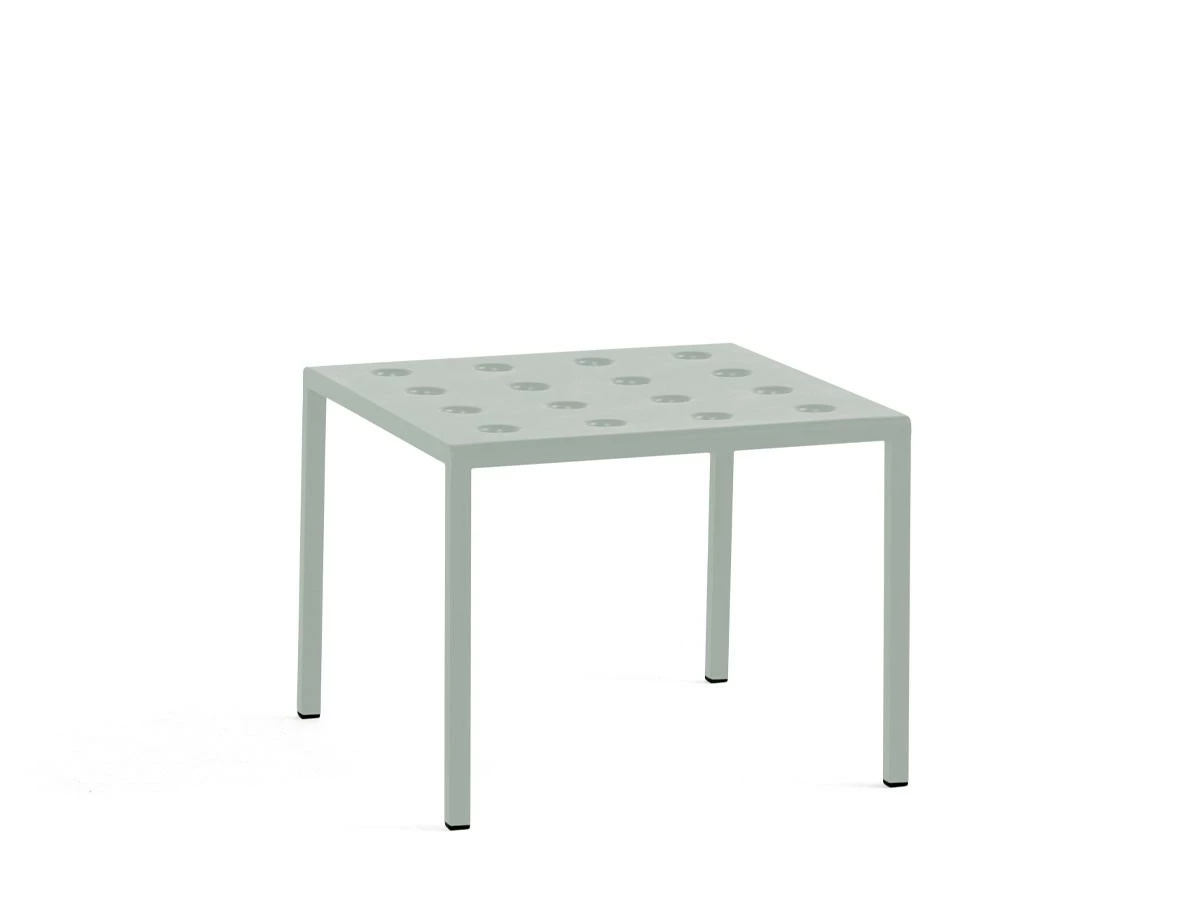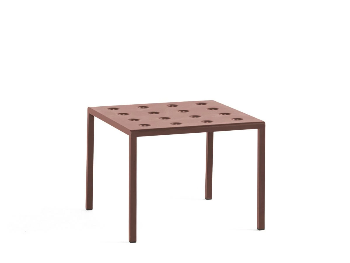 Designed by Ronan and Erwan BouroullecManufactured by HayDesigned for HAY by Ronan and Erwan Bouroullec, the Balcony Low Table is an elegant side table for outdoor use. The simple square design is softened by slender legs, with the multiple holes on the table’s surface strengthening the construction, as well as creating a distinct expression. Made in powder-coated steel with an outdoor primer for optimal resilience and durability, Balcony is available in a number of different colour and size options, making it a versatile table that can be used as an extra seat or storage surface in all kinds of outdoor spaces.