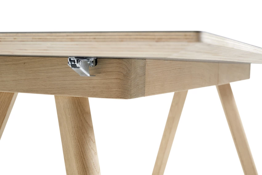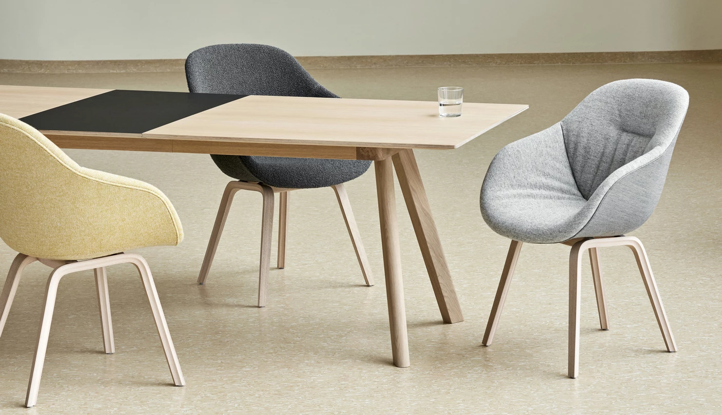 Designed by Ronan & Erwan BouroullecManufactured by HayPart of the Copenhague range designed by Ronan and Erwan Bouroullec, the CPH 30 Extendable shares the same characteristic angled legs and strong identity that are consistent with the rest of the collection, yet its extendable design sets it apart. Supplementary extension leaves can easily be inserted into the table’s central sliding mechanism, allowing the table to be extended to the required length. The table’s flexible length makes it suitable for offices and public contexts, as well as workspace or dining solutions in home environments. CPH 30 Extendable is available in a number of sizes with an oak frame in different finishes, and the tabletop comes in a variety of wood, laminate or linoleum options. The extension leaves can be purchased separately. Please note that colour difference will occur between table tops and leaves within our standard quality and is therefore not considered as a claim.More table top and base finishes available. Please enquire for further details.