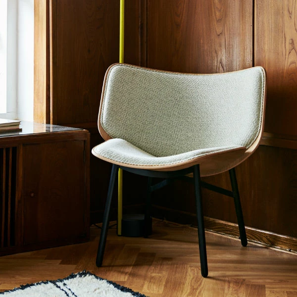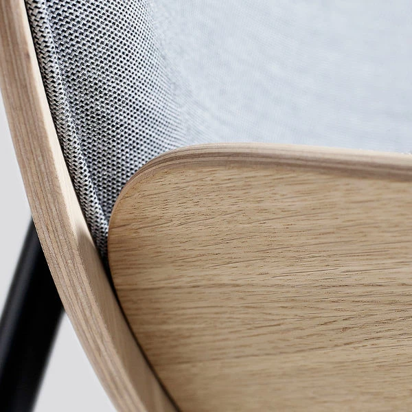 Designed by Doshi LevienManufactured by HayThe Dapper Lounge chair possesses a strong structural shape, providing utmost relaxed comfort.Formed by two connecting oak veneered plywood shells, the seat’s beautifully curved shape creates an extra wide backrest, allowing for the user to gracefully lean back into the frame. Originally designed for use in a London university, the seat embodies a distinctive fusion of industrial design, fine craftsmanship, storytelling and technology. Upholstered in either fabric or leather, the Dapper is a stunning lounge chair that represents sophisticated contemporary design.Dapper may be upholstered in a range of fabrics selected by HAY. Please see materials section below or enquire for further details.