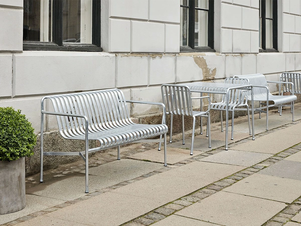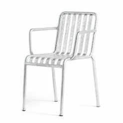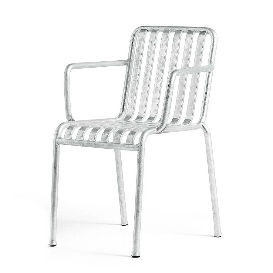 Designed by Ronan & Erwan BouroullecManufactured by HayDesigned for Hay by brothers Ronan & Erwan Bouroullec, the Hay Palissade Armchair – Hot Galvanised Steel, is a stylish addition to your outside space.Part of the Hay Palissade collection, the Hot Galvanised Steel Armchair embodies a striking, sleek design that can integrate effortlessly into a natural landscape or urban setting. Made using a hot-dip galvanisation process, the chair’s steel frame is dipped into molten zinc, forming a resilient coating that can withstand the outdoor elements with ease. Ideal for using with a palissade table, the chair creates a supportive, engaging seat space, perfect for when dining alfresco with friends and family.