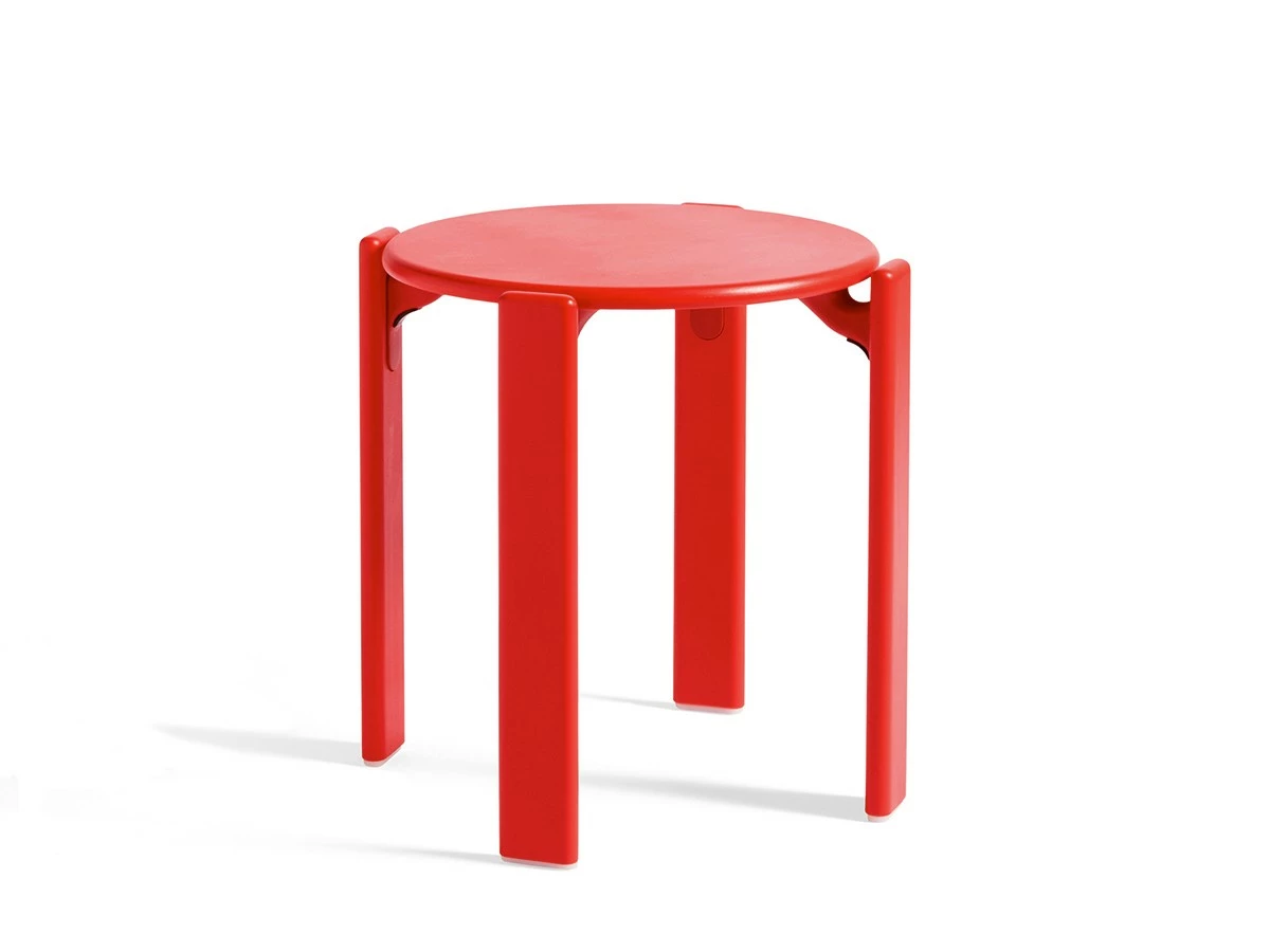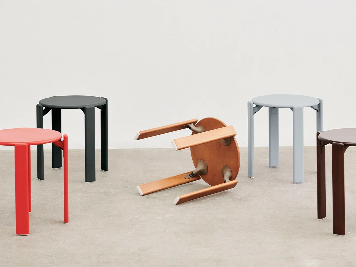 Designed by Ronan and Erwan BouroullecManufactured by HayBased on the original Rey Collection designed by Swiss designer Bruno Rey in 1971, HAY has teamed up with Dietiker to relaunch the Rey Stool. Featuring Dietiker’s unique screwless wood-to-metal connection, the iconic stool has an uncluttered silhouette with angled legs that balance the distinctively rounded edges. Its solid construction, strength and stackable design give it a timeless quality that makes it suitable for using in a wide variety of domestic, public or corporate settings. Made in solid wood, it is available in original colours, as well as new tones selected by HAY. The Rey Collection is not available from HAY in Switzerland.