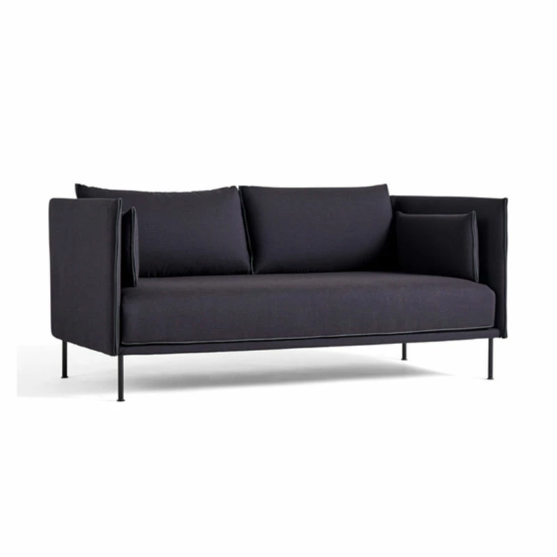 Designed by Gam FratesiManufactured by HAYThe Silhouette two-seat sofa is characterised by its angular front view and the inviting smooth curve of the seat back. The piping provides further definition to make the sofa appear compact while still offering generous seating. The sofa is also available as a high backed version, which defines space and provides additional intimacy. Silhouette may be upholstered in a range of fabrics selected by HAY. Please see materials section below or enquire for further details.