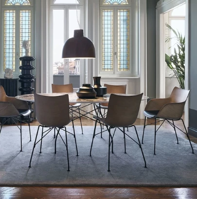 Designed by Philippe StarckManufactured by KartellP/Wood is the chair from the Smart Wood collection which, thanks to its simple and rounded lines, fits into any environment. Using patented technology, the wood is worked with a mould designed to bring the curvature of the panel to the very edges, creating a seat with sinuous roundness.