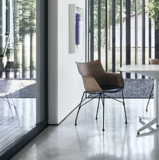 Designed by Philippe StarckManufactured by KartellQ/Wood is the armchair from the Smart Wood collection, with enveloping lines that create soft armrests and offer maximum seating comfort. Using patented technology, the wood is worked with a mould designed to bring the curvature of the panel to the very edges, creating a seat with sinuous roundness.