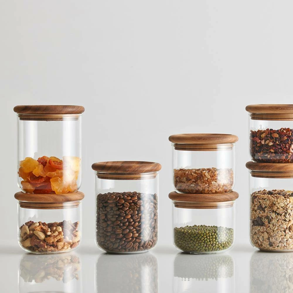Designed by KintoManufactured by KintoAchieving the perfect balance between usability and aesthetics, Kinto crafts unique, high quality tableware and home accessories. Made from heat resistant glass, the Baum Neu canister is fitted with a striking acacia wood lid, lending a rustic feel to kitchen interiors, while the silicone ring ensures a tight seal, keeping dried food fresh.