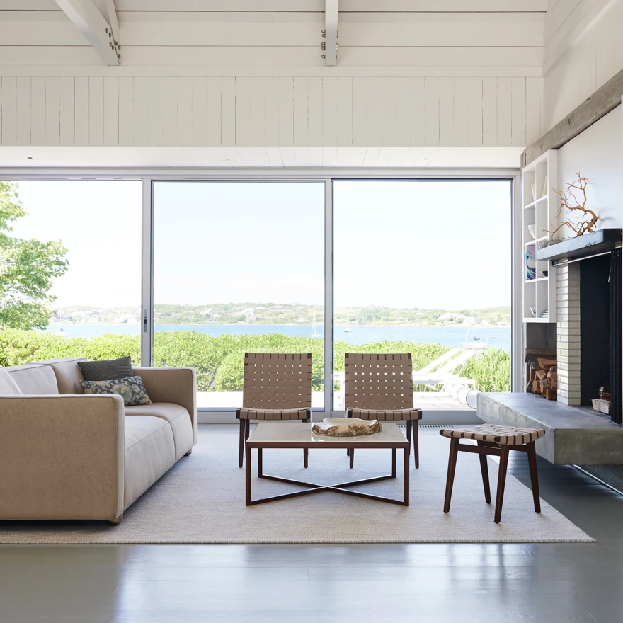 Designed by Jens RisomManufactured by KnollJens Risom’s designs were the first pieces conceived for and manufactured by Knoll. Due to wartime material restrictions, the lounge chair was originally constructed of simple maple frames and discarded parachute webbing. Described as good, honest furniture design, the collection helped establish Knoll as an early source of modern design in America.Risom may be upholstered in a range of fabrics selected by Knoll. Please see materials section below or enquire for further details.
