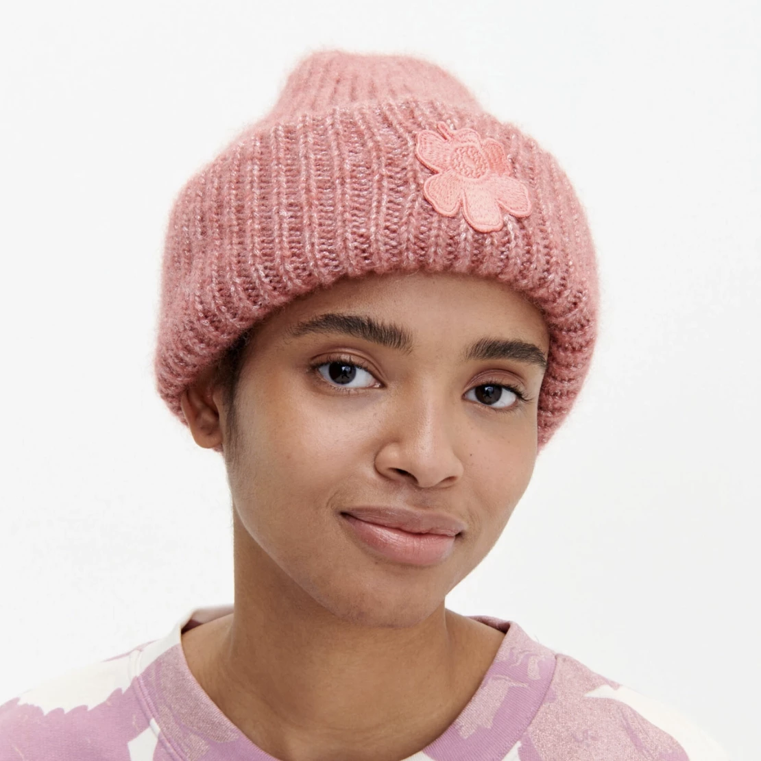 Designed by Maija IsolaManufactured by MarimekkoThe Ludia knitted hat is made of a soft and fluffy alpaca wool blend, with a Lurex yarn included to give it some glitter. The beanie has a wide turn-up and an embroidered Unikko pattern flower in the front.45% of the yarn used in this beanie is recycled Lurex.Marimekko’s famous poppy pattern Unikko was born in 1964 in a time when the design house’s collections featured mostly abstract prints. Designer Maija Isola wanted to create something interesting from this organic theme and designed an entire range of floral prints. Today, the iconic flower represents creativity.