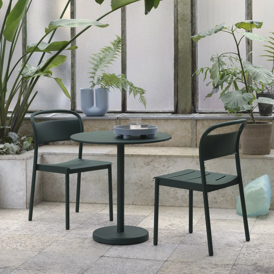 Designed by Thomas BentzenManufactured by MuutoThe Linear Steel Side Chair is designed with clean, elegant lines and subtle details for a modern expression. Uniting invitingly organic shapes with extensive comfort and long-lasting qualities, the Linear Steel Side Chair is an outdoor chair without any compromises. It is defined by its contrasts; the clean lines of its seat and front legs in combination with the ergonomic, smoothly curved backrest for an enveloping comfort. The Linear Steel Side Chair is rationally designed in the way in which its seat is part of the apron, making for less material use in the production phase while making for a strong, durable design.