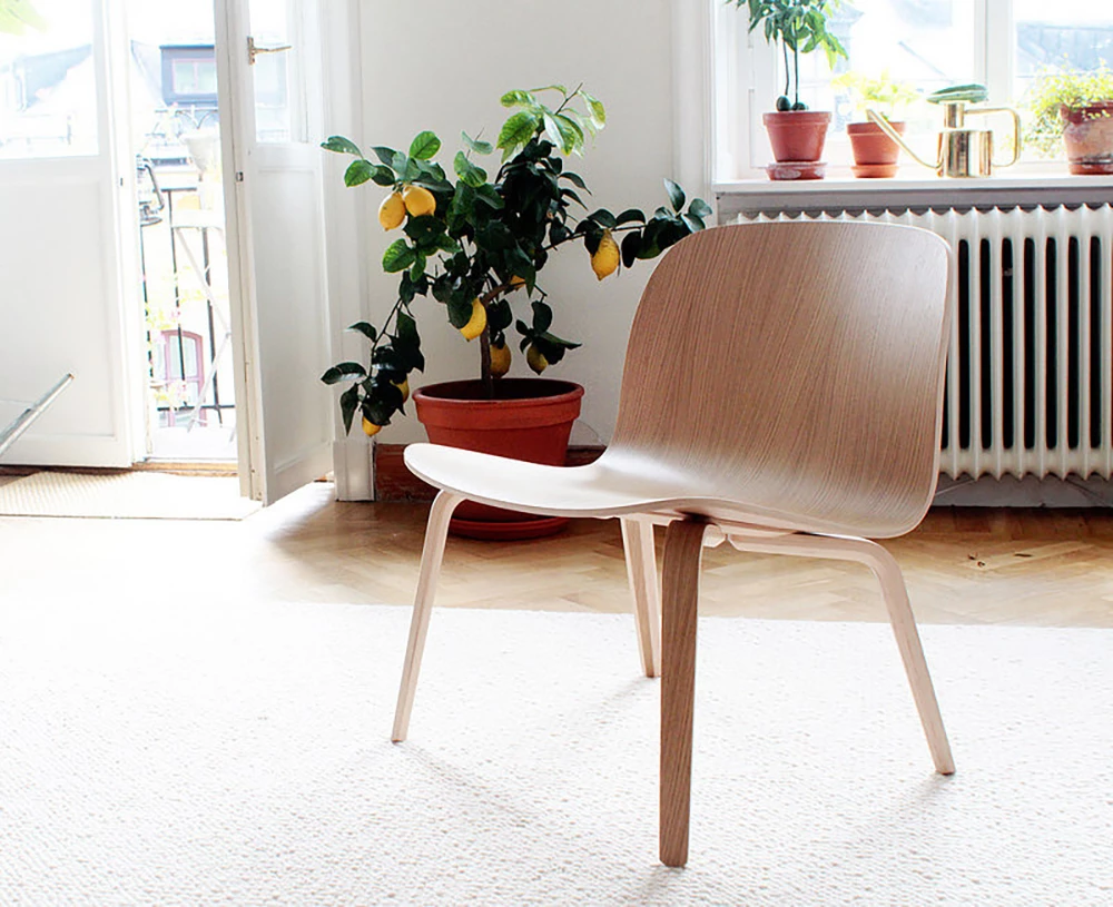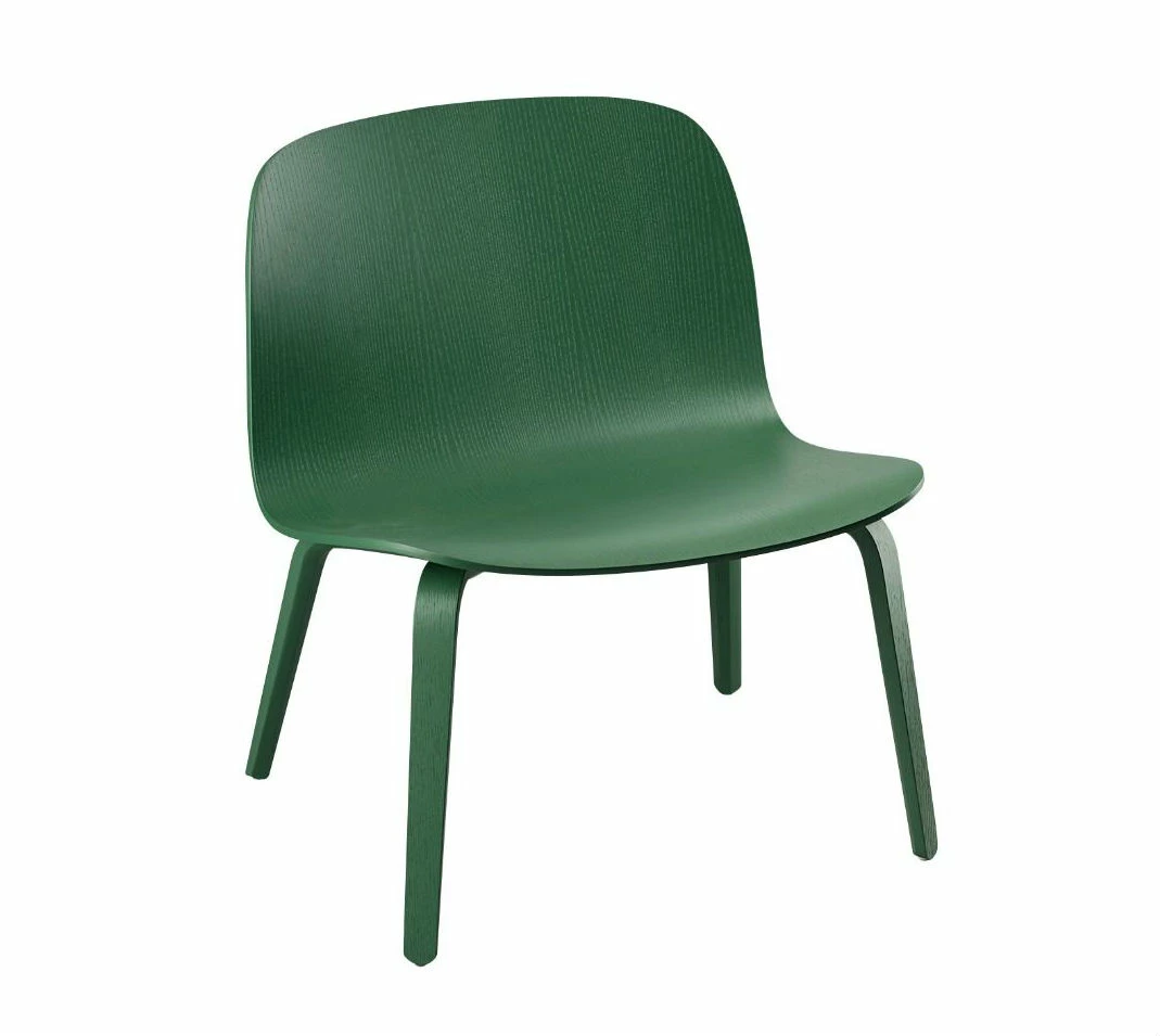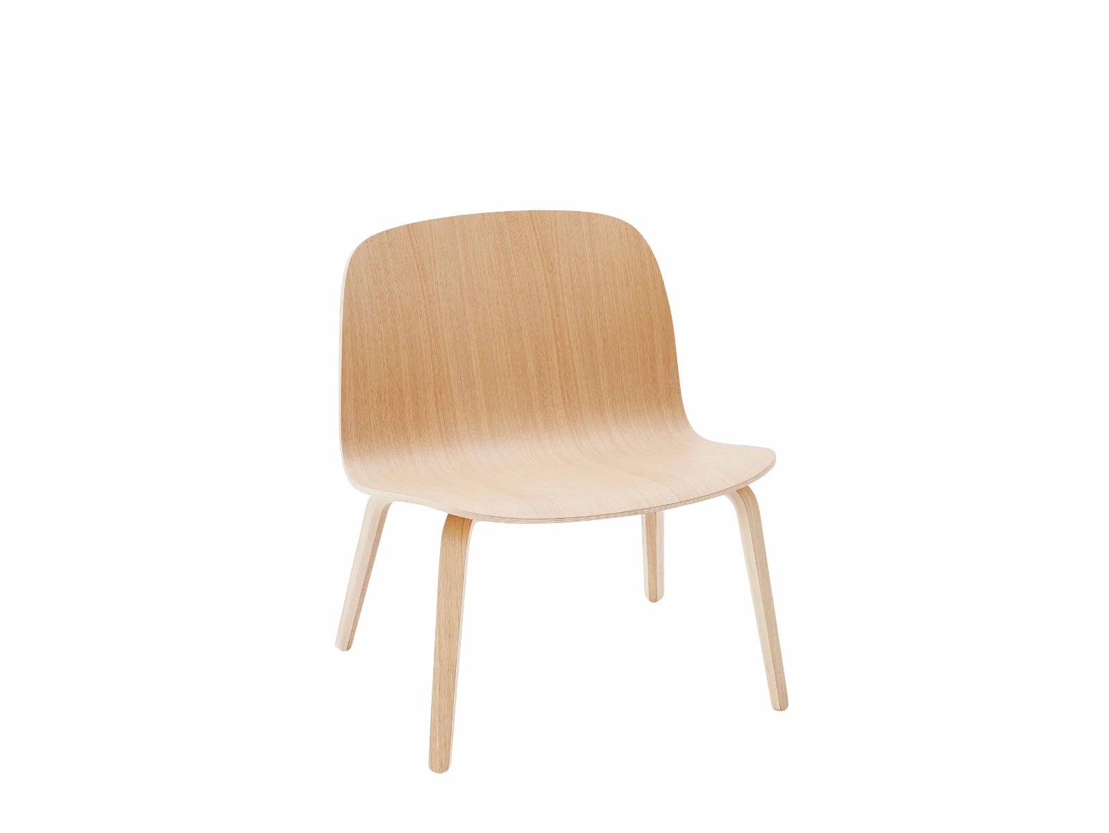Designed by Mika TolvanenManufactured by MuutoThe VISU LOUNGE chair has a timeless and recognisable profile and is designed for lounging in the upmost comfort. Form pressed veneer wood gives the shell of the chair its characteristic shape and creates visible lines and patterns in the surface that complement the design.