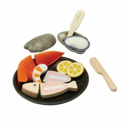 Designed by Plan ToysManufactured by Plan ToysBring the taste of the sea to your young chef’s restaurant with this platter! The set includes a variety of seafood and utensils to teach children the importance of preparatory work in the kitchen. It features 1 oyster, 1 prawn with a peel-away shell, 1 sliceable fish, 2 lemons, 1 oyster knife, 1 fillet knife, and 1 plate. Combine this set with other Plan Toys pretend foods and kitchenware for a five-star restaurant experience!Suitable for children 2YRS+
