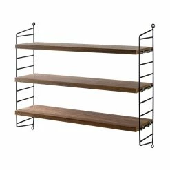 Designed by Nils StrinningManufactured by String®String® Pocket is sold as a complete shelf but is equally flexible as String® System. String® Pocket invites creativity and personality where you can combine two or three String® Pocket shelves into one larger shelf. Mix and match different colours and wooden alternatives to suit your style and preferences. Since the shelf is neat and practical it fits equally well as a nightstand as an extra shelf in your hallway. String® Pocket is sold as one complete unit containing two wire panels, height 50 cm, and three shelves, width 58 cm and depth 15 cm.