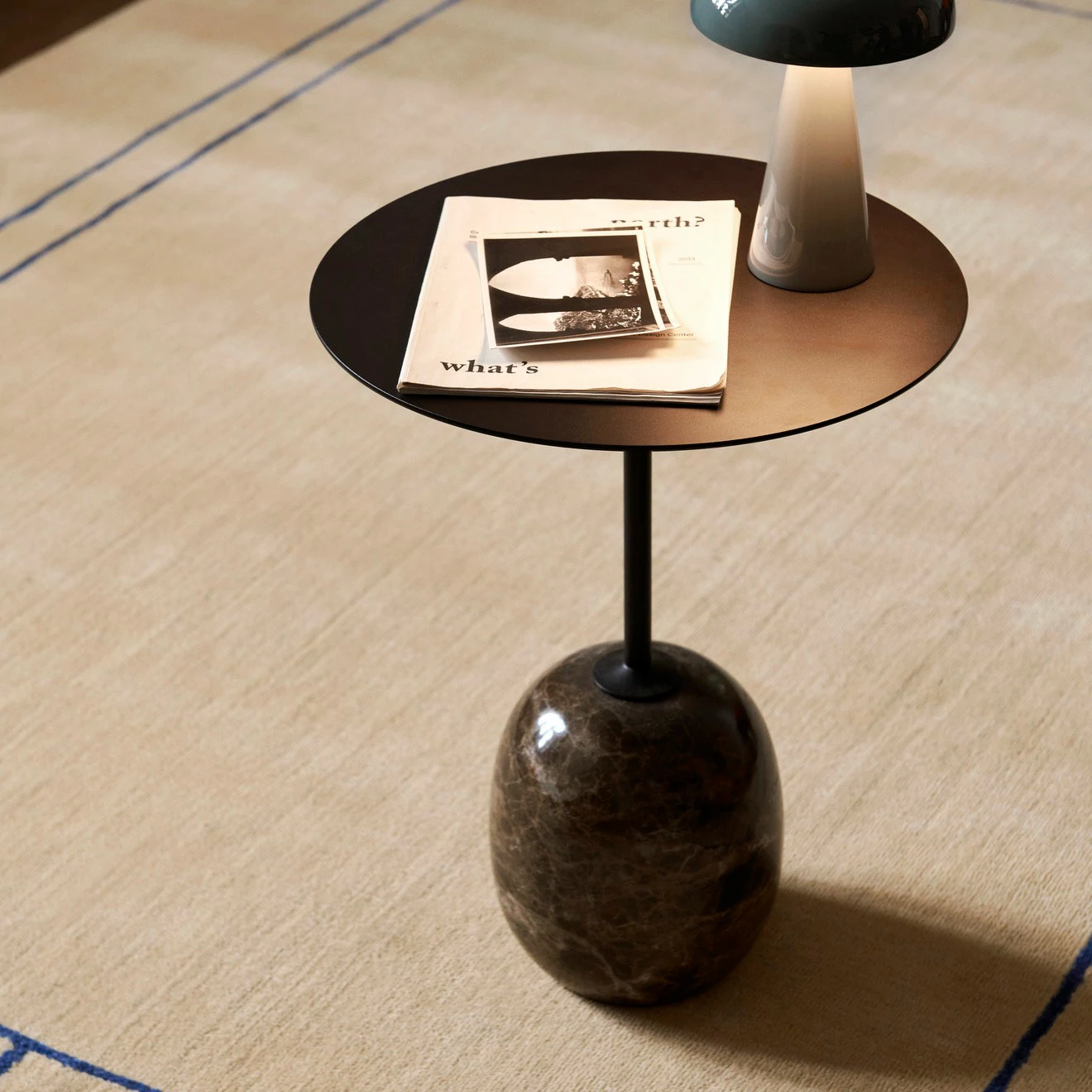 Designed by Luca NichettoManufactured by &TraditionAt first glance, Lato resembles a sculpture, with its slim, oval or round table top balanced by an oval-shaped base. Striking, graphic and poetic, its purity of form is proof that simple is sophisticated. With Lato, Nichetto wanted to keep the simplicity and streamline into a timeless side table in a style that could easily be the centre of attention.