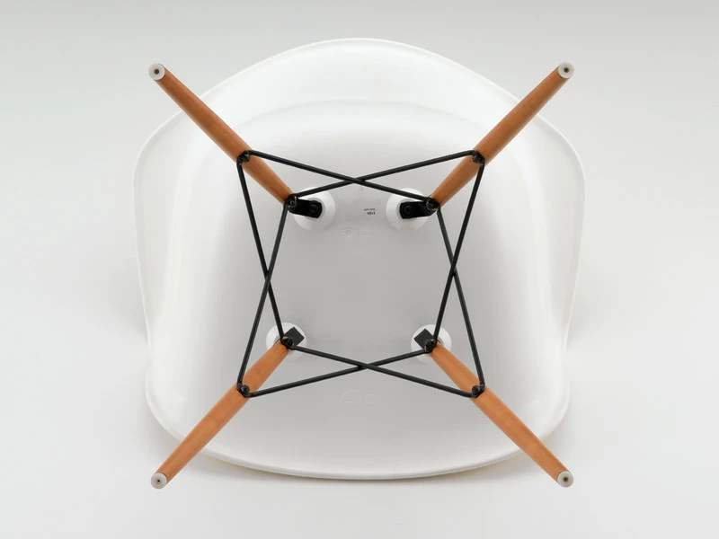 Designed by Charles and Ray EamesManufactured by VitraThis chair was first designed in 1948 and presented at the New York Museum of Modern Art competition ‘Low-Cost Furniture Design’. In their latest version made of polypropylene, the armchairs now offer even greater sitting comfort. With various bases, the Eames Plastic Armchair is suitable for the home, cafés, offices, lobbies or waiting rooms and training areas.