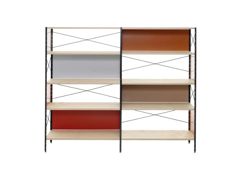 Designed by Charles and Ray EamesManufactured by VitraIn 1949 Charles and Ray Eames developed an iconic system of free-standing multifunctional shelves and bookcase. These have been given a fresh and contemporary look by Dutch designer Hella Jongerius. A second feature of the new ESU is the adjustment of the horizontal dimensions and the expansion of the variants that turns ESU into a veritable family of shelves.