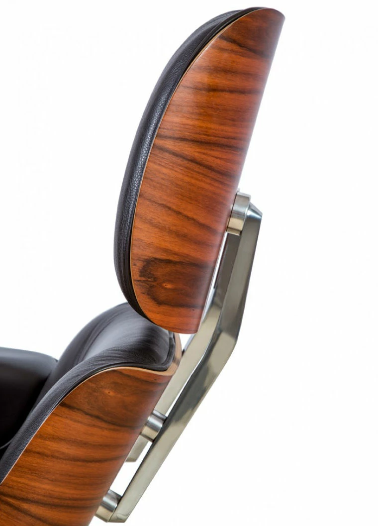 Designed by Charles and Ray EamesManufactured by VitraThe first Eames lounge chair and ottoman was designed by Charles and Ray Eames as a gift for Billy Wilder, the director of classic film ‘Some Like It Hot’. Making its public debut in 1956 on Arlene Francis’s Home show, Charles Eames said his goal for the chair was that it be “a special refuge from the strains of modern living”.This chair is santos palisander plywood with a Black base.Eames lounge may be upholstered in a range of fabrics selected by Vitra. Please see materials section below or enquire for further details.