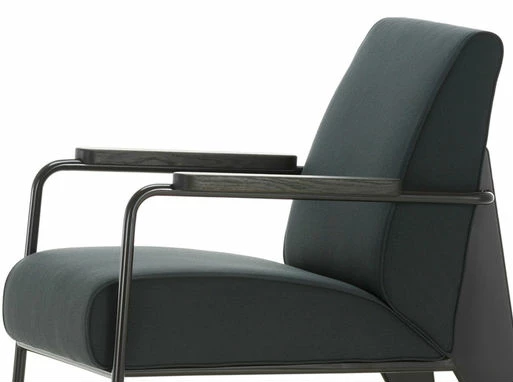 Designed by Jean ProuveManufactured by VitraThe Fauteuil de Salon chair combines plain surfaces into a complete architectural form with a comfortable seat and backrest. Rediscovered in the archives of the French design engineer, the chair’s colour was adapted for modern tastes. Thanks to the armrests in oiled solid wood and Prouve’s typical philosophy of focusing on design factors, Fauteuil de Salon goes perfectly with other products in the reworked Prouve Collection by Vitra.Fauteuil may be upholstered in a range of fabrics selected by Vitra. Please see materials section below or enquire for further details.