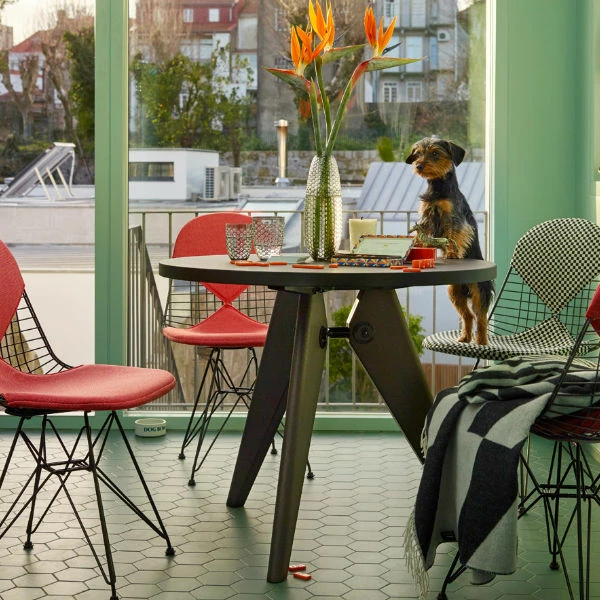 Designed by Jean ProuvéManufactured by VitraThe Guéridon Table is a stylish and sturdy dining table from Jean Prouvé.The Guéridon Table proves that modern tables do not have to be made of steel and glass. It offers a variation on Prouvé’s standard formal language by using the natural material of wood.