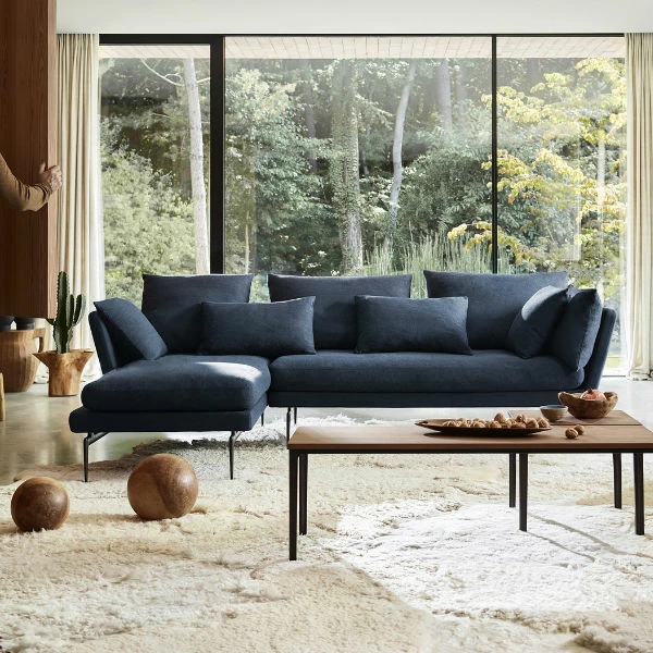 Designed by Antonio CitterioManufactured by VitraThe Suita Sofa is part of a large family of individual pieces of furniture that can be combined together, offering any number of opportunities. The seat and back cushions are available in various degrees of softness. Together with the choice of fabric and leather covers they offer individuality in terms of comfort and appearance. The slender seat shell allows the maximum seating area, whereas the sofa itself takes up as little space as possible. The polished aluminium base elements and the thin sheath give Suita furniture it’s elegance and hovering lightness.Suita Sofa may be upholstered in a range of fabrics selected by Vitra. Please see materials section below or enquire for further details.
